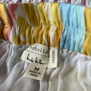 Wonderful fun print 2 piece outfit by Artelier Nicole Miller. Worn only once‼️ P-P is 21” on top (Medium) and skirt has an elastic waist of 15” with a length of 37”. Lovely colors flowing in the Spring or Summer wind! 🌷🌸🌺
