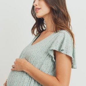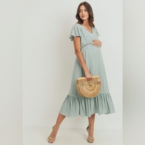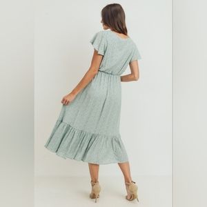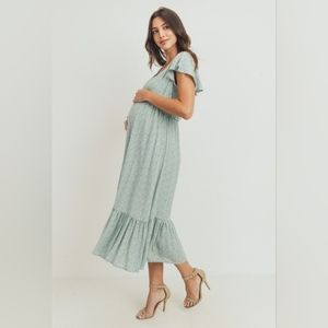 Chic midi dress by Pinkblush. Soft green with delicate floral pattern. Flowy ruffled hem. Perfect for pregnancy or baby shower. Originally poshed for baby shower but weather wasn’t right for it!