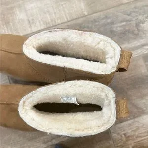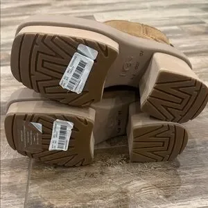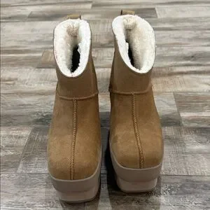 UGG Tan Women's Platform New Heights Suede Mini Boots