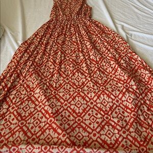 In excellent pre-owned condition. Elastic waist. PTP: 17 in. Waist: 11.5 in (laying flat). Length: 53 in. All measurements are approximate.