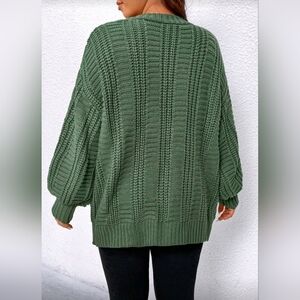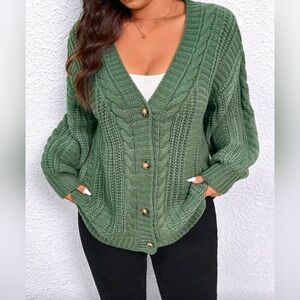 New Boho Chunky Cable Knit Cardigan Sweater PLUS Olive Green