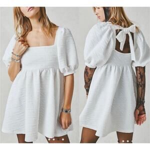 Free People Women's Violet Mini Dress Babydoll White Size Large NEW