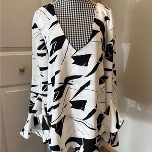 Chic black and white abstract design. Flowing silhouette with a stylish V-neck. Perfect for versatile styling. Pit to pit 20 inches. $89 brand new price. Tag still attached