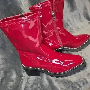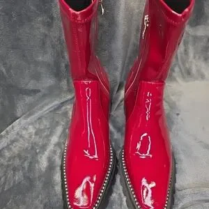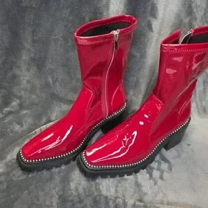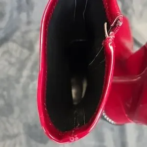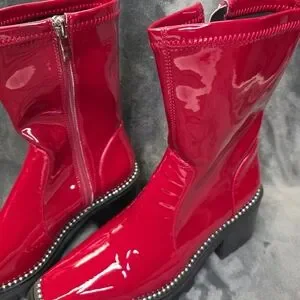 Step out in style with these striking red patent leather ankle boots. Perfect for adding a bold touch to any outfit.