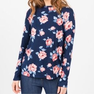 NWT Agnes & Dora Cross Over Floral Print Sweater in Navy & Blush