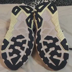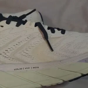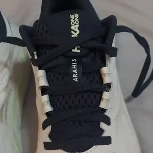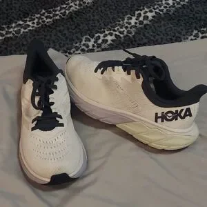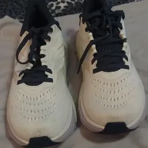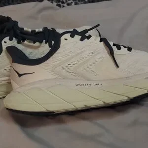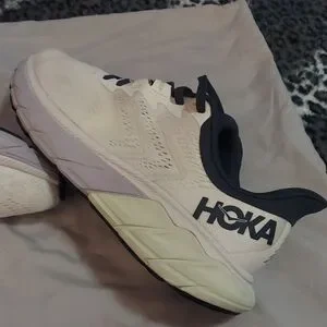 Stylish 8 1/2 B Hoka sneakers for women. White with navy accents. Ideal for active lifestyles. Comfortable, and in great condition.