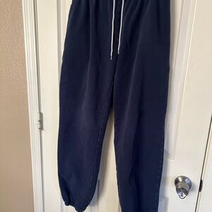 Navy joggers with elastic waistband. Comfortable and casual style.