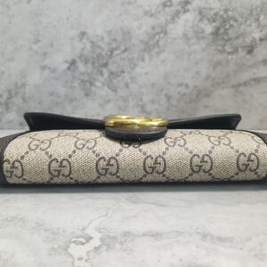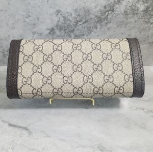 Elegant Gucci women's bag in beige and brown. Features iconic GG pattern and gold accents. Perfect for any occasion.