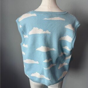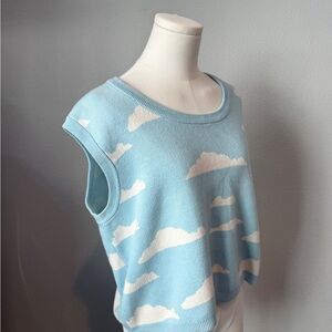 Charming crop top with cloud design. Soft blue and white colors. Sleeveless and stylish.
