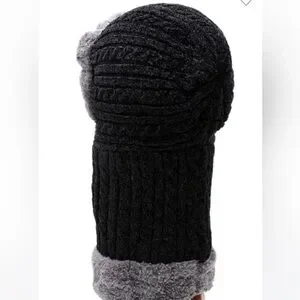 Faux Fur/Fleece Lined Hooded Neck Warmer Balaclava Ski Mask/Scarf Hat.