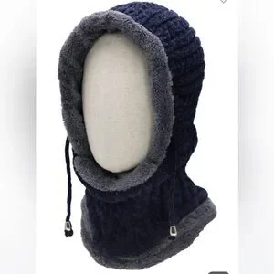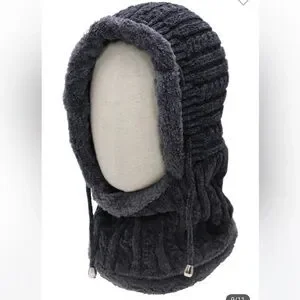 Incredibly soft & warm chenille & a fleecy faux fur fully lined balaclava with hood adjustable drawstring. Unisex listed as womens using platform available options.