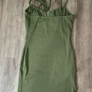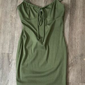Olive green mini dress with tie front. Fits tight all throughout. Size large but I would say it fits more like a medium. Worn once.