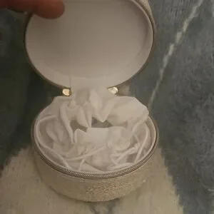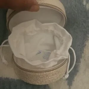 Luxurious Dior jewerly holder in shimmering cream. Adds elegance to any accessory collection.