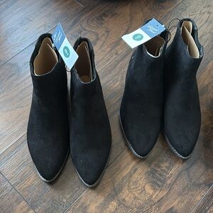 Elevate your shoe game with these stylish Alena Boots from Universal Thread. Made with high-quality faux suede material, these ankle booties feature an almond toe shape, ankle strap, and a block heel style. The boots come in a beautiful black color that pairs well with any outfit, and are suitable for any occasion, be it travel, party, formal or casual. With a memory foam insole and faux leather lining material, these boots offer the perfect combination of comfort and style. The outsole material is made of faux suede, making it durable for any season, winter, summer, fall or spring.
