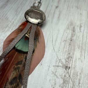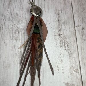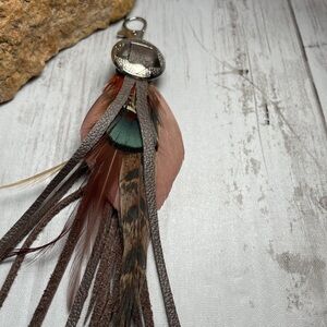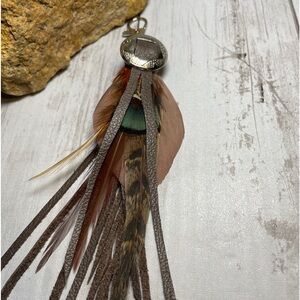 This Handmade Keychain Or Purse Toggle Features A Lovely Bouquet Of Genuine Pheasant And Peacock Feathers Which Were Ethically Gathered, Coupled With Genuine Soft Brown Pebble Grain Leather Hand Cut For A Fringe Boho Hippie Western Vibe