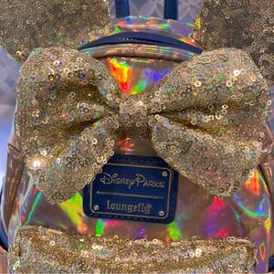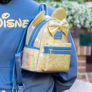 Loungefly Disney 50th Anniversary Gold Blue Earidescent Sequins Bow Backpack
