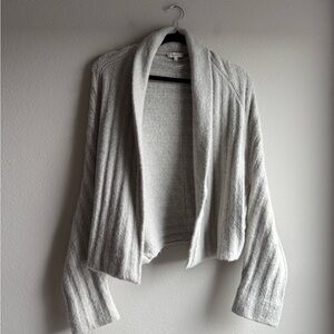 A cozy, cocoon-like cardigan in a ribbed, textured alpaca blend out of Italy. Features a shawl neckline and dolman/batwing sleeves.