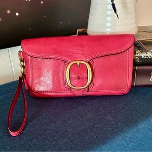 GUC - Fuchsia-colored leather clutch/wristlet with gold-tone hardware, including heavy buckle. By Coach and Four.