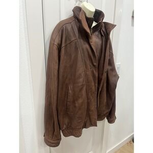 Wilsons Leather Men's Brown Genuine Leather Bomber Jacket Full Zip Size XL