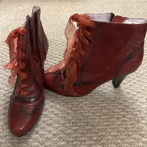 Chic burgundy lace-up boots by Hush Puppies. Stylish and comfortable for any occasion.