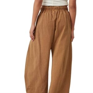 Stylish brown wide-leg pants. Perfect for casual wear. Oversized in true FP fashion so they were too big for me. Meant to hit right at ankle but have a bit of a dropped croch, hence the short inseam. measurements in pics.