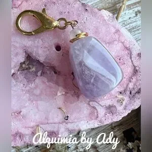 This exquisite key holder features a polished gemstone charm in a captivating purple hue, complemented by gold-toned hardware. Its unique design adds a touch of elegance to your everyday accessories, making it both functional and stylish.