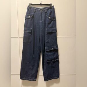 Peppermayo Exclusive Wide Leg Denim Cargo Pants