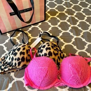 32C Victoria's Secret Hot Pink/Leopard Print Bra Duo lingerie