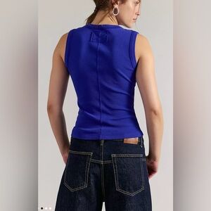 Elevate your style with this vibrant blue sleeveless top. Perfect for any occasion, this top offers both comfort and elegance.