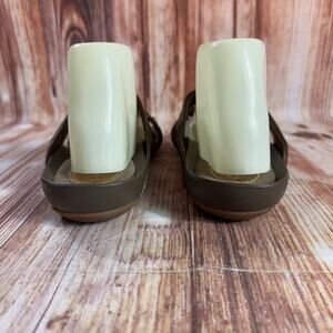 Clarks Sandals Sz 9 Bronze Leather Open Toe Slides Flip Flops Thong Flats Shoes