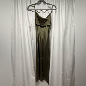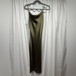 Beginning Boutique Olive Satin Slip Dress Cowl Neck Maxi Size 4
