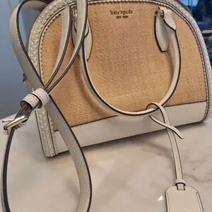 Stylish and elegant, this Kate Spade bag features a chic straw and white design. Perfect for any occasion, it combines functionality with fashion.