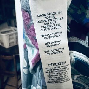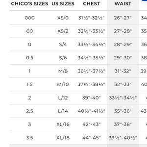 Fit note: Stretch knit fabric (95% polyester / 5% spandex) allows additional ease beyond flat measurements. This aligns with a relaxed, flattering drape typical of Chico’s Size 3.