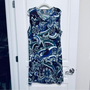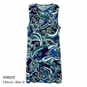 NWOT Chico’s Sleeveless Paisley Print Shift Dress Blue Green Stretch Size 3