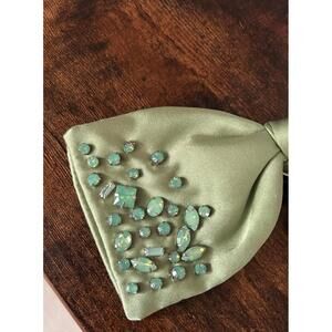 Lele Sadoughi hair bow with clip from the Starlet Collection. A very colorful, vintage piece! The color is Peridot for the birth stone of August.