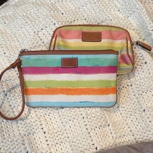 Brighten your look with this Coach wristlet and pouch set. Features colorful stripes. Ideal for stylish organization.