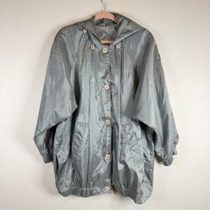 Vintage IZZI Silver Metallic Hooded Windbreaker Jacket - Women's Size Large