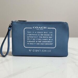 Coach New York Blue Leather Storypatch Wristlet Pouch NWT C1847 F29131
