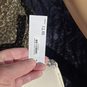 Brand new W.T.I. Design vintage-style shoulder bag in a classic white croc-embossed finish. This sleek, minimalist bag is perfect for everyday wear or dressing up an outfit. Features a structured rectangular silhouette with a top zip closure and silver-tone hardware. Interior is fully lined and includes a zip pocket for organizing essentials. Comes with an adjustable shoulder strap, still wrapped in protective plastic, and original tags attached.