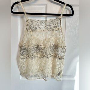 NWT Anthropologie Fem Romantic Coquette Embroidered Mesh Lace Ivory Cami Top S