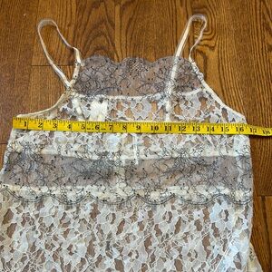 Gorgeous sheer lace top from Anthropologie. Beautiful deatls with adjustable straps. Some light stretch to it.