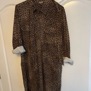 Chic long sleeve dress with leopard print. Perfect for versatile styling. Comfortable and stylish.