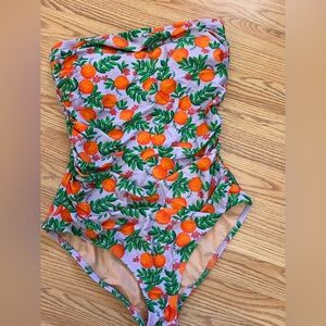 J. Crew Vibrant Fruit Print One Piece Bandeau Swimsuit