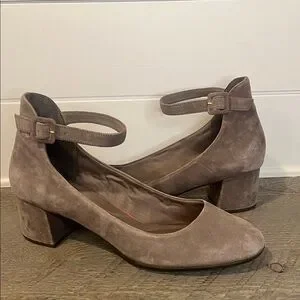 ROCKPORT Taupe suede/nubuck Novalie ankle strap pump. Comfort brand!