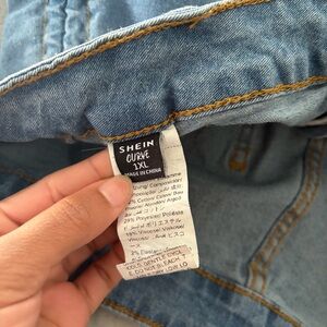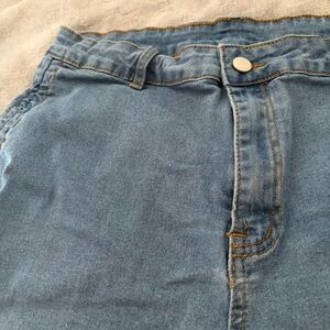 Trendy blue jean shorts with ruched side detail. Ideal for casual wear. Preowned size 1xl