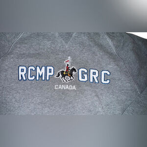 Cozy gray sweatshirt featuring RCMP GRC Canada embroidery. Perfect for casual wear.