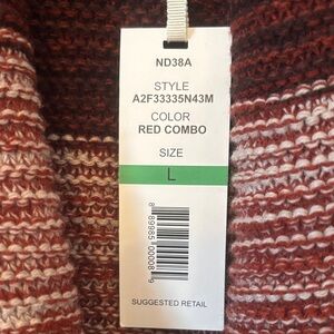 One A chic and warm cardigan with bold stripes. Features burgundy, brown, and cream hues. Perfect for layering. Brand new with tags.