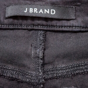 J Brand women’s super skinny jeans in black coated stretch denim. Women’s size 26 with a sleek, body-hugging silhouette and mid-rise waist that creates a sharp, streamlined look. The coated finish adds subtle sheen, giving these jeans a polished feel that reads more elevated than standard denim.