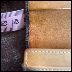 In EXCELLENT Vintage Condition - Very Clean Interior, Zipper works great, very minor wear, normal signs of patina and use, a tiny crack on either side of the front flap. Hardly noticeable and does not affect the overall quality.