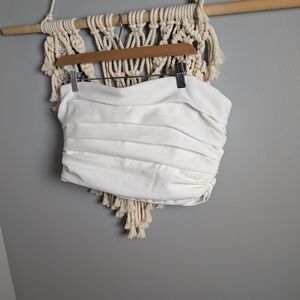 Zara Draped Bustier Crop Tube Top Large White Bridal Bachelorette